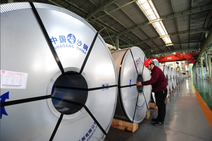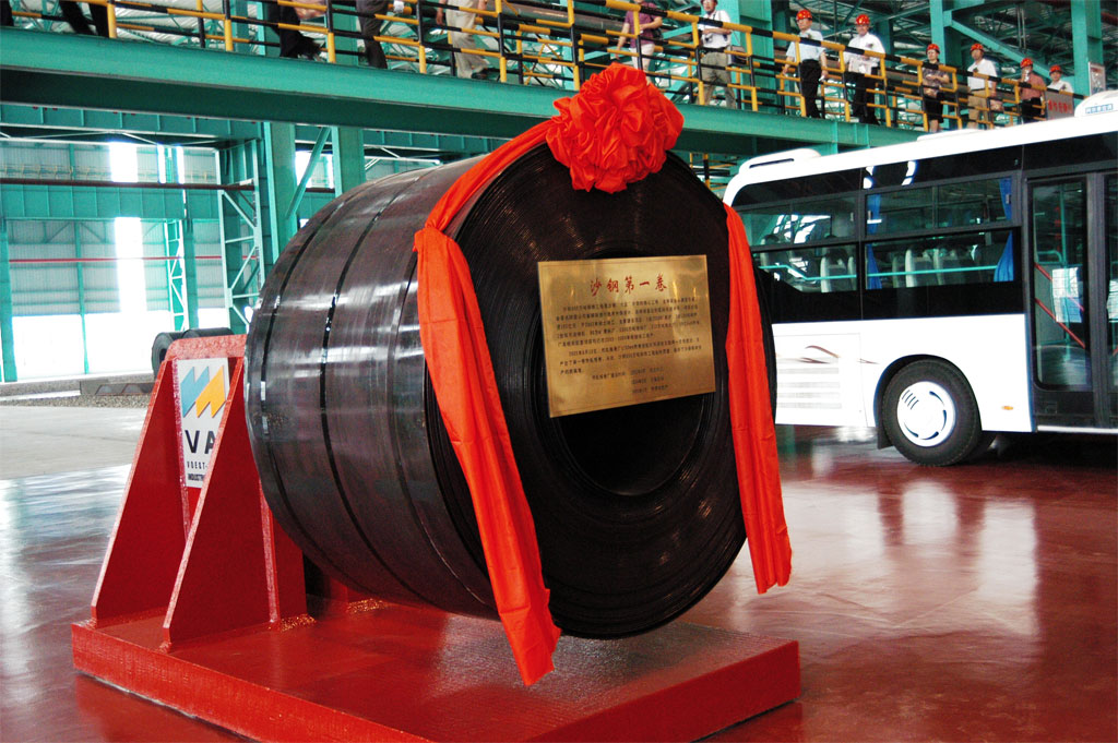 沙钢板材产品品类齐全,形成了宽窄匹配、厚薄兼有、冷热齐备的独特优势。主要产线有5000mm宽厚板、3500mm中厚板以及1700mm、1450mm热卷板和以热代冷、以薄代厚超薄带生产线(厚度:0.7-1.9mm),以及280万吨冷轧卷(包括电工硅钢、电镀锡、热镀锌、酸洗卷、普板连退、轧硬卷等),产品主要用于造船、海洋工程、锅炉与压力容器、管线、建筑、桥梁、机械、汽车、中高档家电、食品饮料包装等行业,重点产品应用于西气东输国家战略能源管道建设、沪通长江大桥、海洋石油981平台等重点工程。